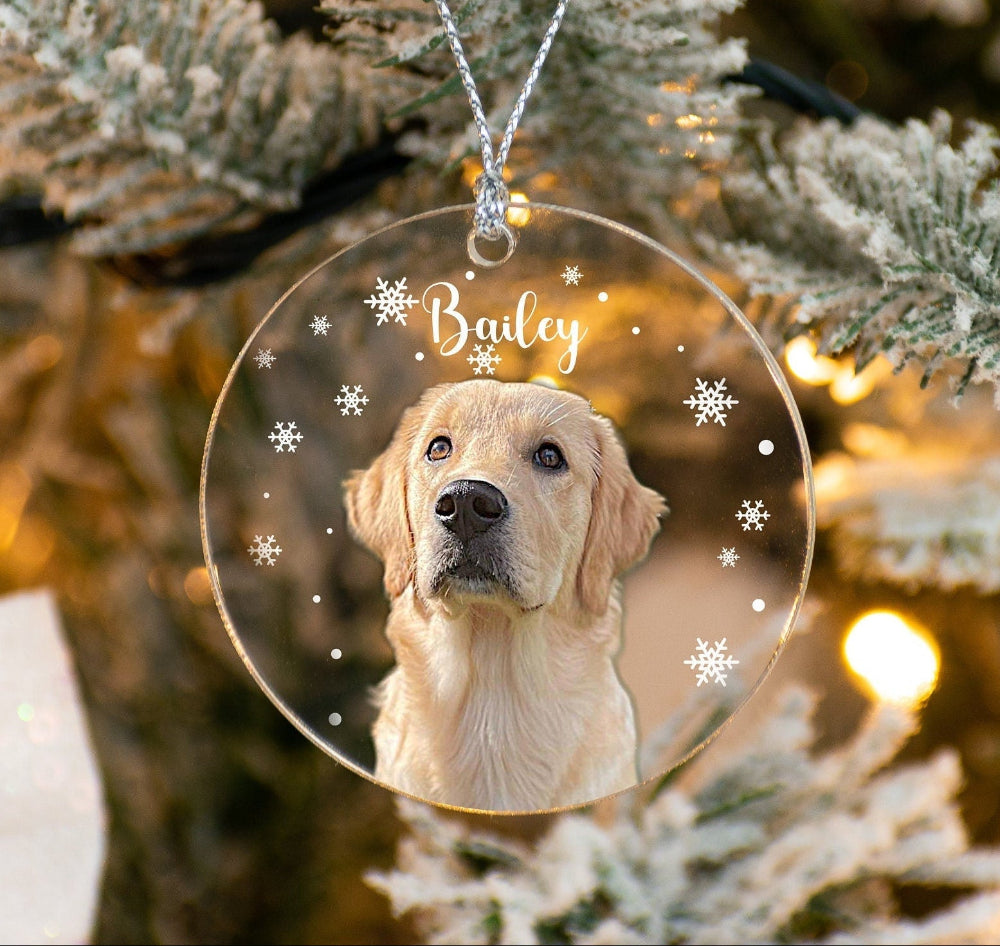 Custom Dog Ornament, Personalized Pet Christmas Ornament, Pet Memorial Ornament, Cat Christmas Photo Ornament, Pet Portrait Name