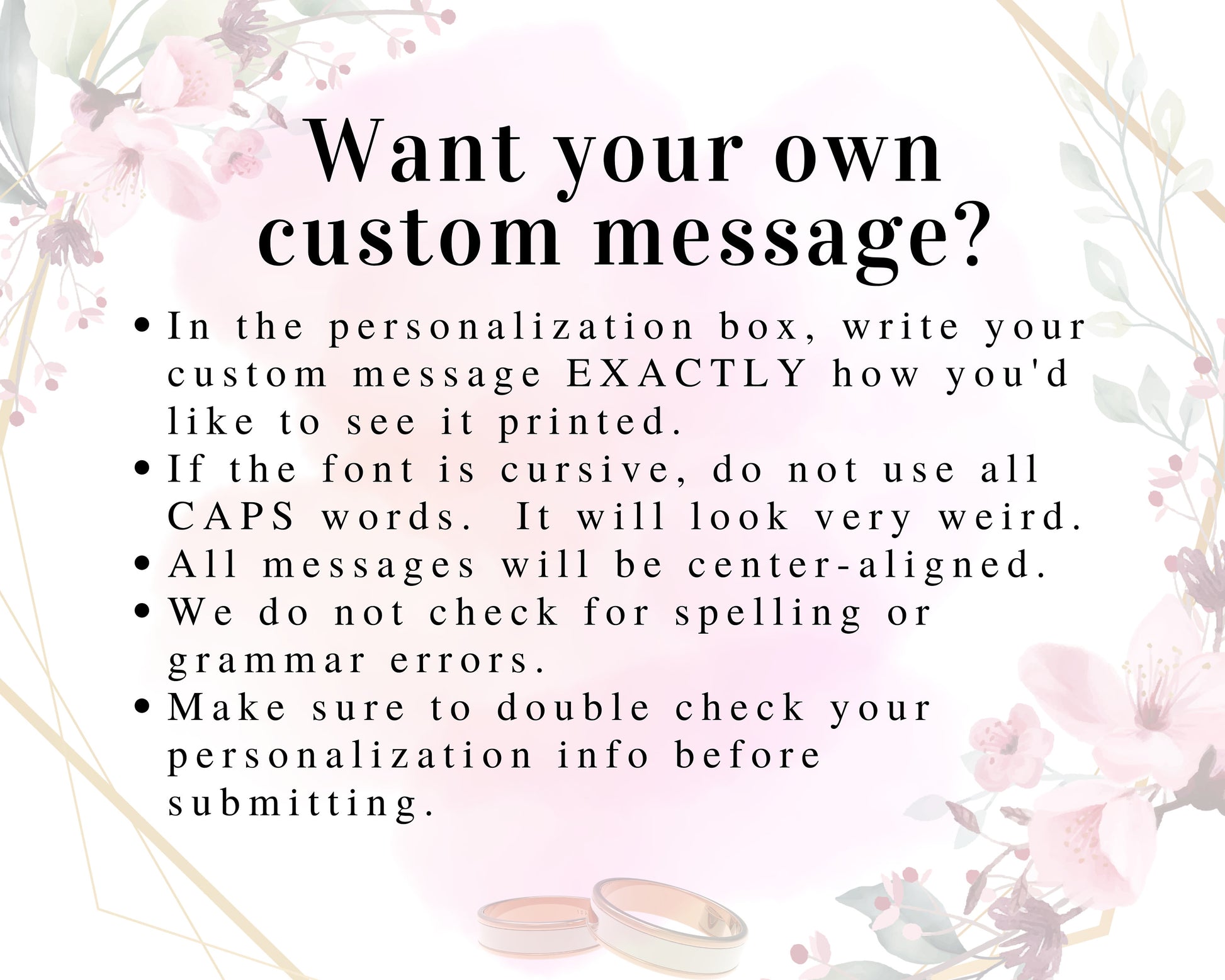 - Write your custom message out EXACTLY how you'd like to see it printed.