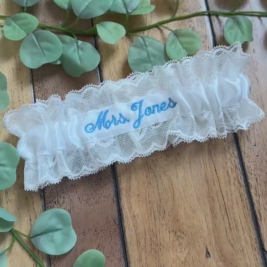Personalized Wedding Garter: Custom Embroidered Bridal Lace, Petite to Plus Sizes